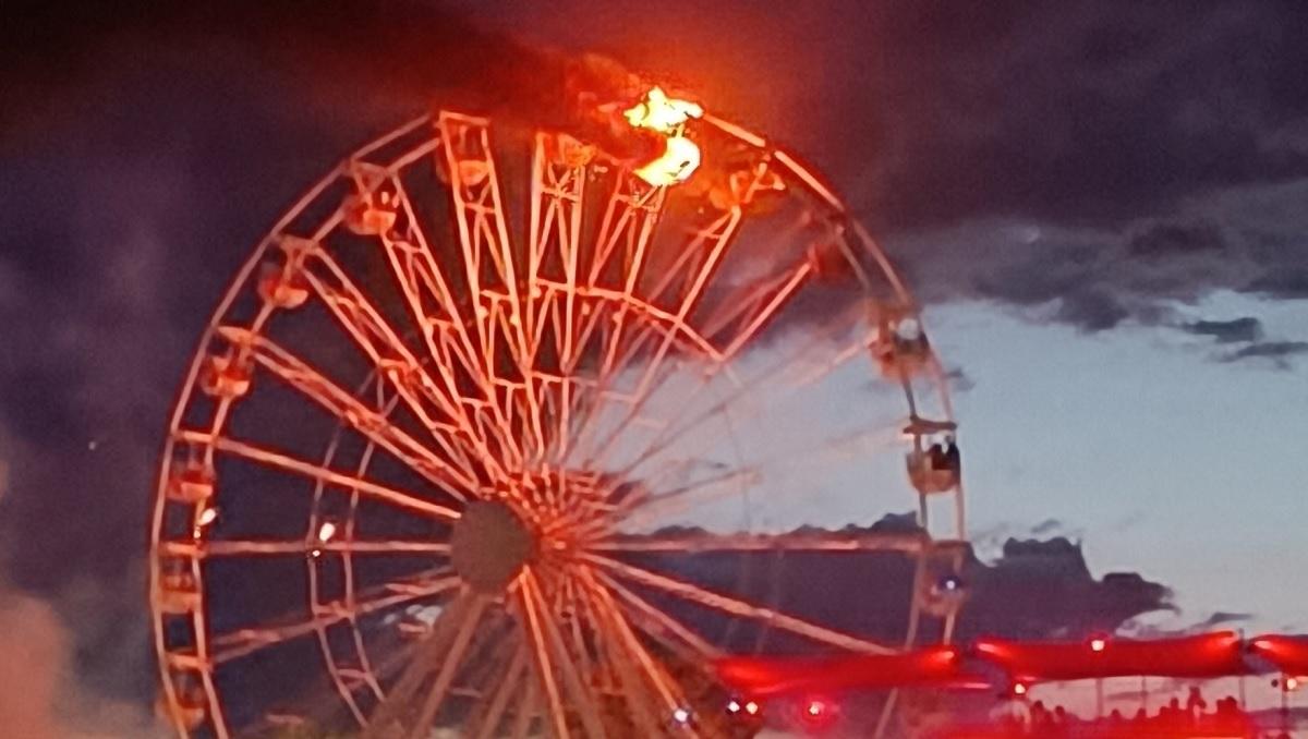 Photos published by German media showed flames engulfing gondolas on the spinning Ferris wheel, with thick black smoke billowing above the ride.