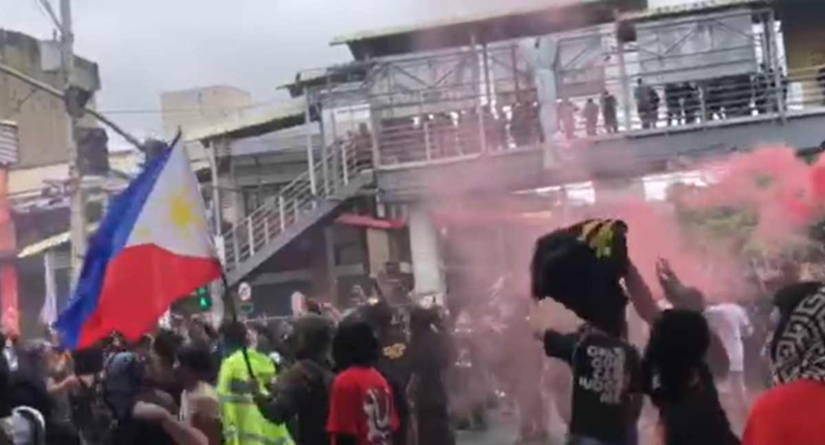 MANILA, Philippines —Tension flared at Ayala Bridge on Sunday, September 21, after anti-corruption protesters clashed with police and set fire to vehicles blocking the road.