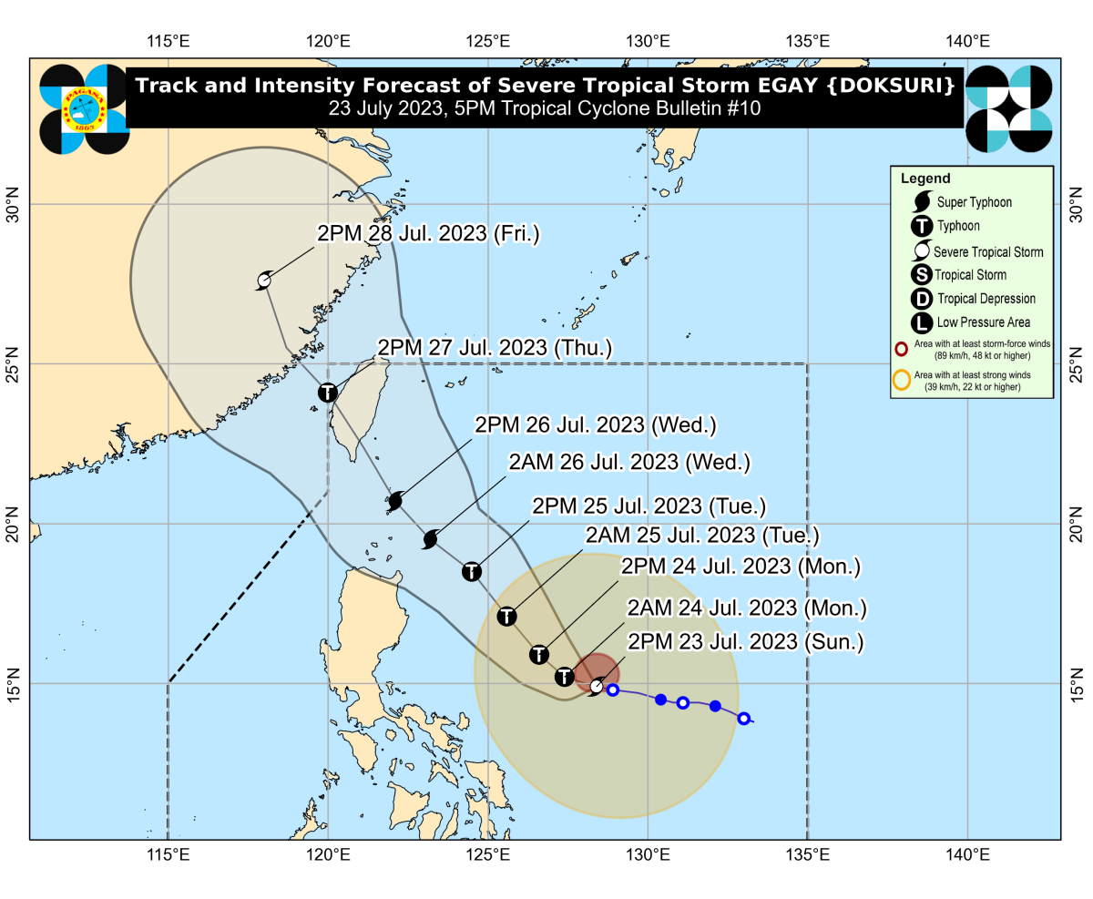 Pagasa said that “Egay” will likely reach typhoon category within 24 hours and may become a super typhoon on Tuesday.